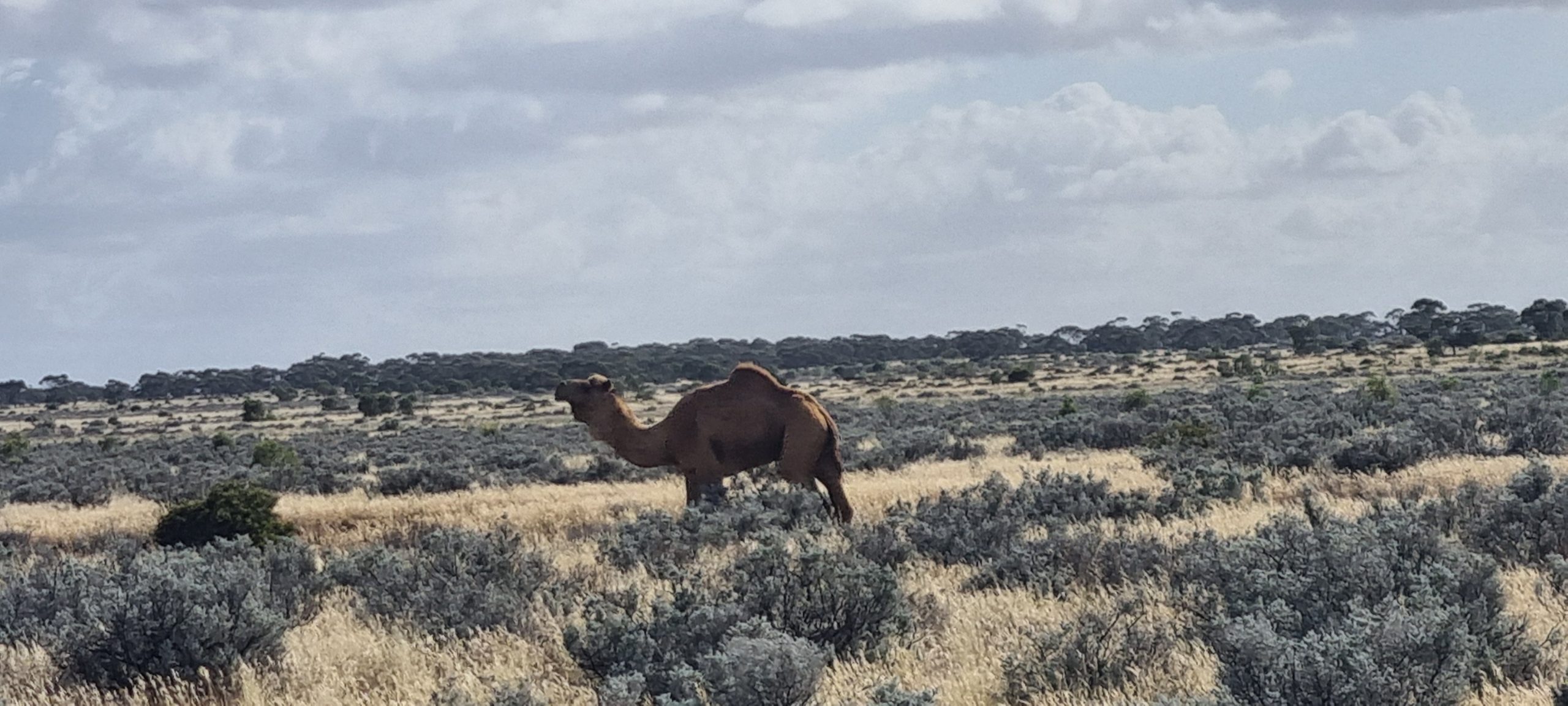 Off I went, eager to get down this road little knowing I would not see another township/village for at least 1500kms and the place of Penong. It began by seeing a camel!! And it stopped and I got a photo. The only sighting of an animal all the way.