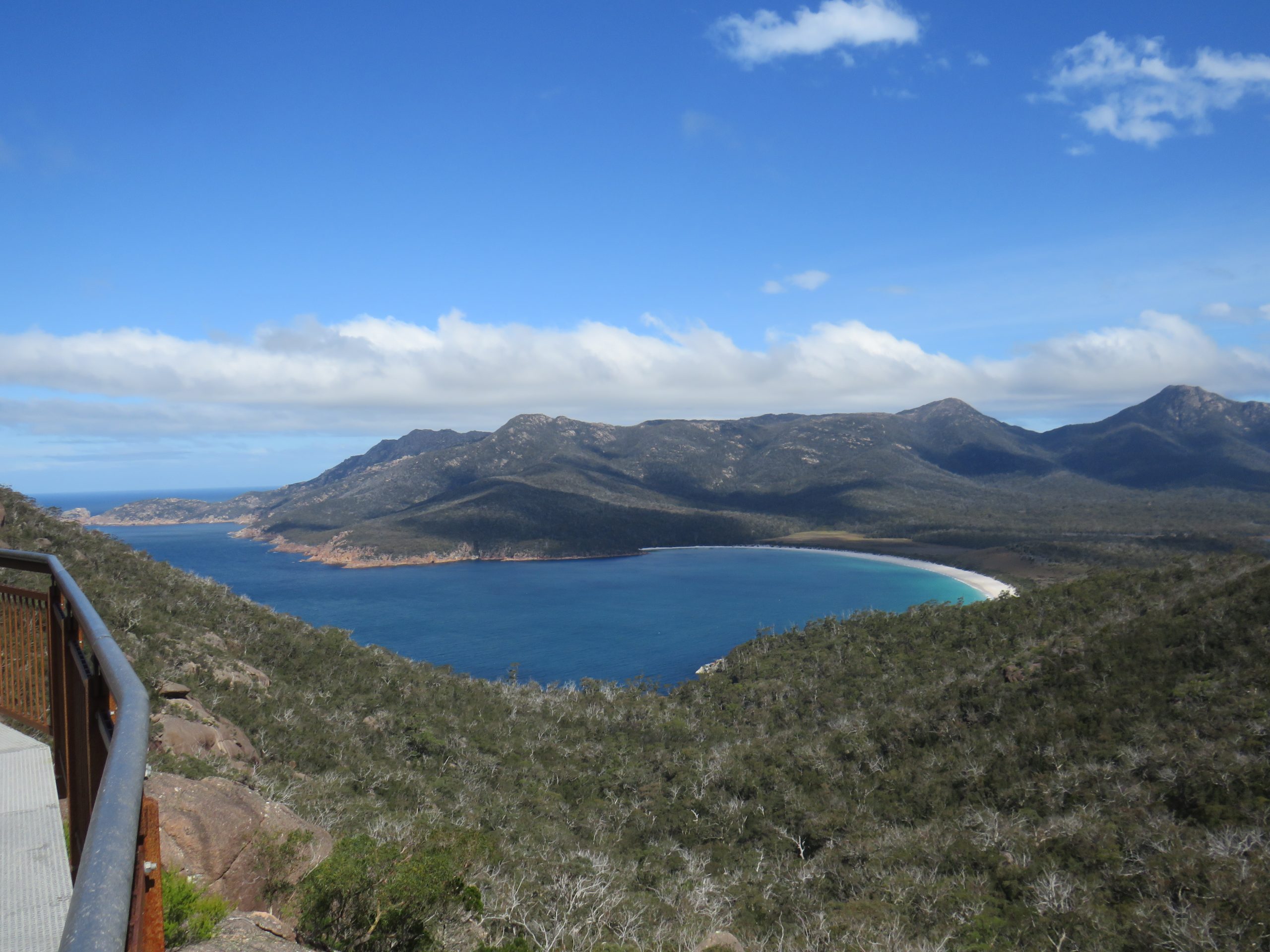 Ran out of my room by 9am as it was still cold. Car soon warmed me up. It was off to Orford and then looked at ferry to Maria island and that was hopeless. So onwards up  the coast to see Coles bay and Wineglass bay. Another payment to National parks…this time Freycinet…and off I went on a walk to the look out point at the top of the path that looks out over  Wineglass bay.  You can go down to the beach but then you will have another 1000 steps apparently .. up. It was 185m ascent. 40 mins up and a bit less down. That should have walked off the scallop pie in Triabunna.